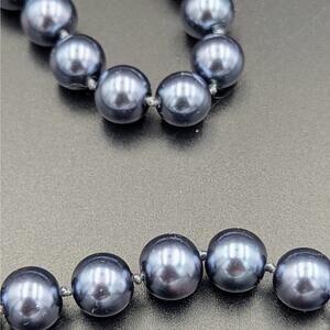Elegant and timeless, this vintage-inspired gunmetal gray glass pearl necklace adds a bold, sophisticated touch to any outfit. The strand is beautifully knotted between each bead for quality and flexibility, allowing it to drape gracefully whether worn long or doubled.
