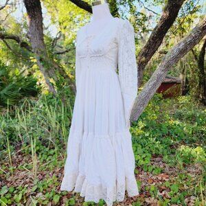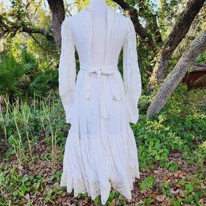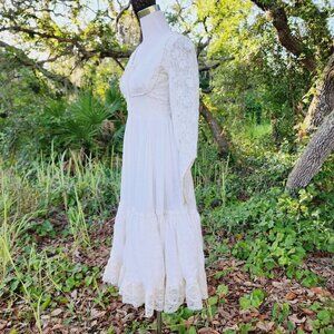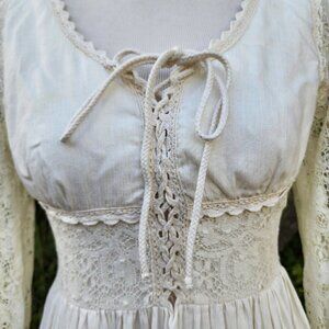 Vintage Gunne Sax Cotton Lace Bridal Cottagecore Lace Up Dress Prairie Boho 5