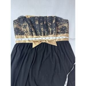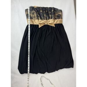 Vintage Gunne Sax Jessica McClintock Bubble Hem Dress Strapless Black Gold Lace
