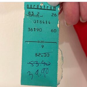 Vintage from the very late 80’s/early 90’s, check out that old Nordstrom tag! Very rock-glam vibes from the end of the heavy metal era. Red off the shoulder semi-formal with red rose in the center. ***The sizing is a Juniors 9 from 30+ years ago so please refer to measurements: pit to pit 17” across, waist is 14” across and length is 37”. Made with 100% acetate.