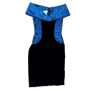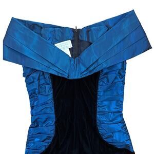 Vintage Gunne Saxe Dress Black Blue Velvet Cocktail *XS Off Shoulder 80s prom