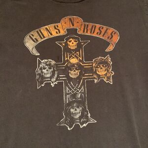 Vintage Guns N Roses Black Graphic Skull Cross Tee Band Shirt size Large