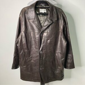 Vintage Guy Laroche Men's Brown Leather Button Front Blazer Jacket Size 42 US