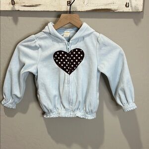 Vintage 2010 Gymboree Girls Best Friend line. Size 4t-5t. Adorable light blue kids hoodie featuring a charming brown polka dot heart design. Perfect for keeping your little one cozy and stylish. Zipup. In good shape. Some paint missingg Fromm zipper pull but otherwise looks good.
