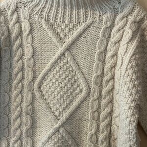 Vintage Gypsy Rose Cozy Cream Cable Knit Turtleneck Sweater. Wool.