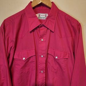Vintage H Bar C Shirt Pearl Snap Western Button USA 17/34 XL Rodeo 70s 80s