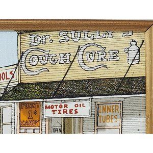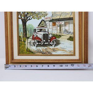 Vintage H. Hargrove Framed Serigraph Oil Painting Dr Sullys Cough Cure Red Car