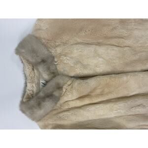 This Vintage H. Liebes California fur jacket in women's size M is a stylish overcoat perfect for chilly weather. The beige color and medium size make it versatile for various outfits, while the fur outer shell material adds a touch of luxury. With a regular fit and classic design, this jacket is sure to become a staple in any woman's wardrobe.