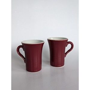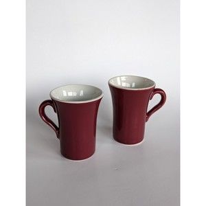 Set of 2 vintage Hall Pottery maroon/burgundy restaurant ware mugs. These work well as replacement pieces or just to add a splash of vintage color to your kitchen.