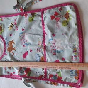 This handmade bib apron is perfect for Valentine's Day or any occasion where you want to look like a real cutie in the kitchen. The multicolor pattern and vintage style make it a unique addition to your collection. Made from 100% cotton, this apron is machine washable and easy to care for.