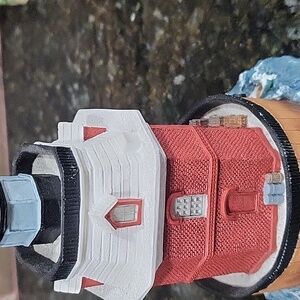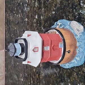 Add a touch of coastal charm to your home with this nautical lighthouse accent. Featuring vibrant red and blue colors, it's perfect for any room.