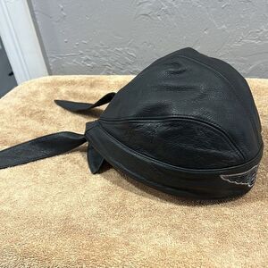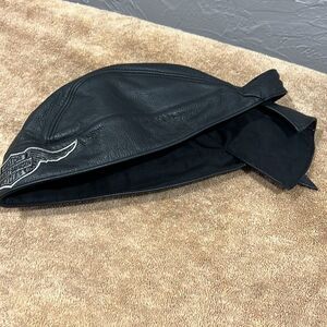 🔥🔥 Vintage HARLEY-DAVIDSON Black Leather Embroidered Bandanna Hat XL - PERFECT