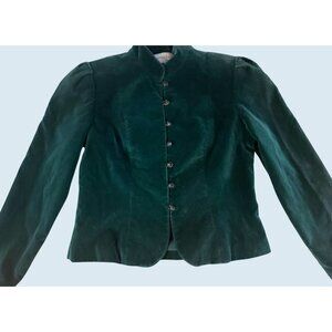 Vintage HARRISON DAVIS Green Velvet Full Button Blazer Coat 1980s Sz S