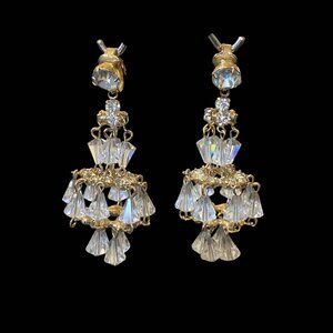 Vintage HATTIE CARNEGIE Austrian Crystal Chandelier Clip Earrings 1950s