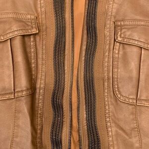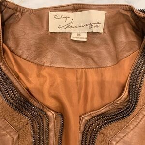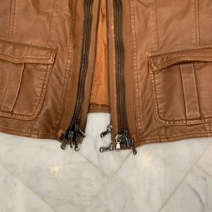 Vintage HAVANA Vegan brown leather car coat jacket w/open zippers EUC size M