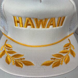 Vintage HAWAII HAWAIIAN Headwear Embroidered Gold Leaf & Rope Snap Back Hat