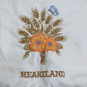 Vintage HEARTLAND DESIGN CUSTOM CLOTH EMBROIDERED Apron Wood Rings Pocket