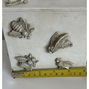Vintage HEN-FEATHERS Cast Resin Trinket Box /Jewelry Box w Lid Bee All Over