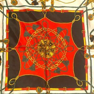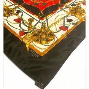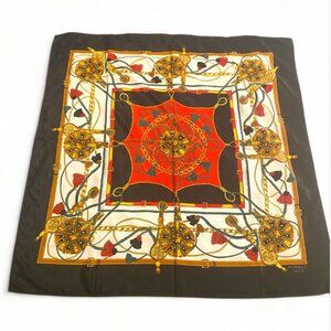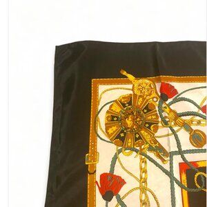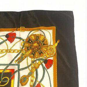Vintage - HERMES Paris Lion Medallion 100% Silk SCARF - BLACK