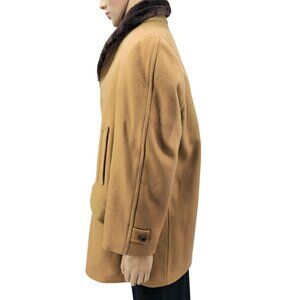 Vintage H.I.S Mens Camel Coat With Faux Fur Lining & Shawl Collar Button Closure