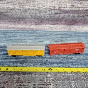 Vintage H.O Scale Union Pacific & Great Northern livestock train cars yellow/red