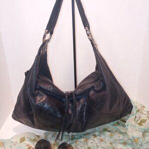 Vintage HOBO INTERNATIONAL Classic Leather Hobo Bag w Hidden Pocket Black