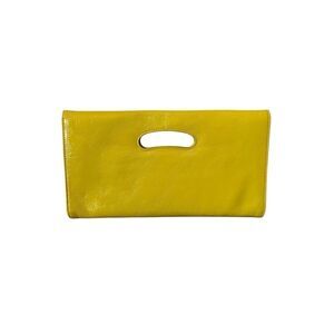 Vintage HOBO International Fold over Clutch Handbag Patent Leather Yellow