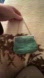 This is a vintage weather, teal little wallet, change purse made by a hobo international. It is a very beautiful old purse with a nice chain to hold on your wrist.