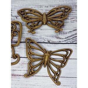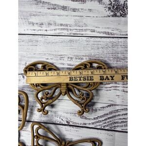 Vintage HOMCO 7537 Syroco Butterfly Faux Wood Wicker Wall Decor Set of 3 MCM