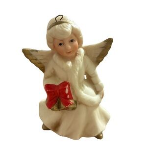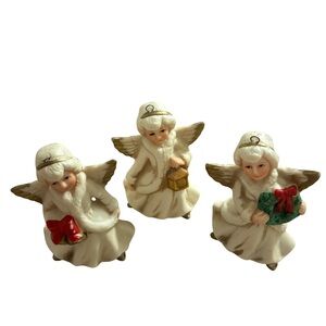 Vintage HOMCO Porcelain Angel Trio Christmas Ornaments 1960’s Ivory & Gold