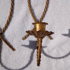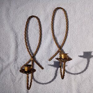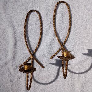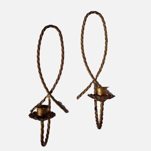 Vintage HOMCO Twisted Wire Candle Sconce Pair Gold Hollywood Regency Candelabras