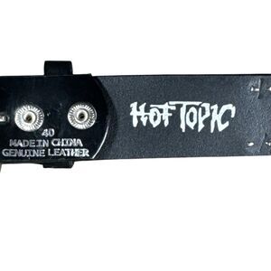 This Vintage Hot Topic Silver Pyramid Stud Skulls Black Leather Belt in size 40 is a stylish and edgy accessory for anyone looking to add a touch of rock, punk, or grunge to their outfit. The belt features a solid black leather material with studded accents and a unique silver pyramid stud design. It is adjustable and suitable for both men and women, making it a versatile and on-trend addition to any wardrobe. Perfect for those who appreciate vintage style and a bit of an edge in their fashion choices.