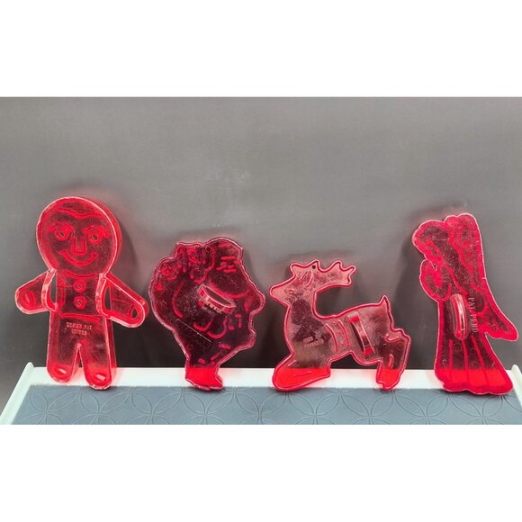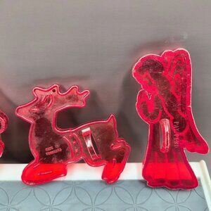 Vintage HRM Loma Red Plastic Christmas Cookie Cutter Lot Gingerbread Man Angel