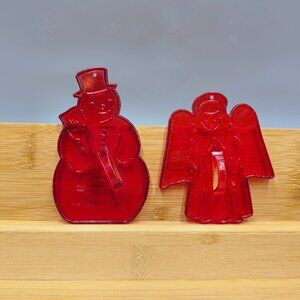 Vintage HRM Loma Red Plastic Christmas Cookie Cutter Lot Toy Soldier Angel Gift