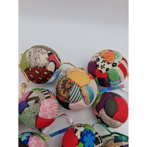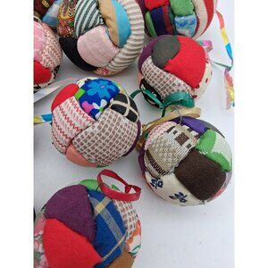 Vintage HTF 11 Fabric Quilted Patchwork Christmas Ornaments Handmade Round