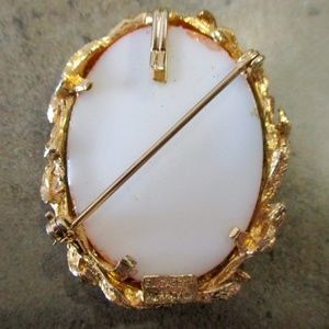 Beautiful Coral Stippled Gold Oval Easter Egg Pendant that can be either a Brooch OR a Pendant. It is in Excellent Vintage Condition. It is marked on the back "Elizabeth Morrey" and measures 1 3/4" in Diameter.