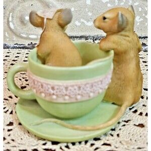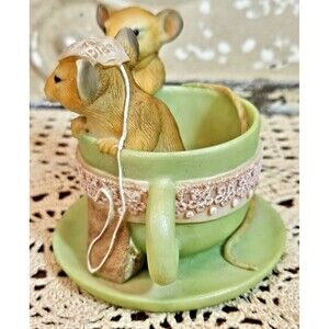 Vintage HTF Stone Critters SC-1174 Resin "Two For Tea" Mouse Figurine (read)