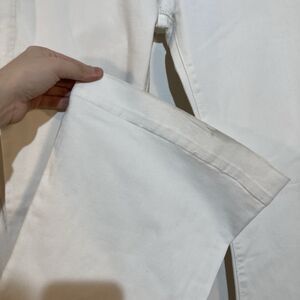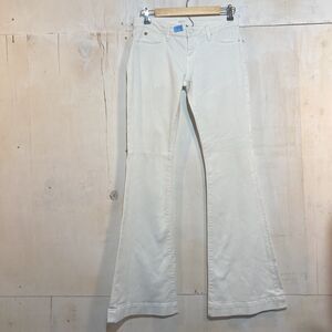 Made in USA original vintage white flare jeans with the classic fold over pockets. Dry cleaned. Slight distressing at the hems.