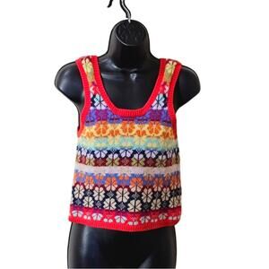 Vintage HWR Anthropologie Wool Blend Knit Rainbow Fair Isle Tank Top Small