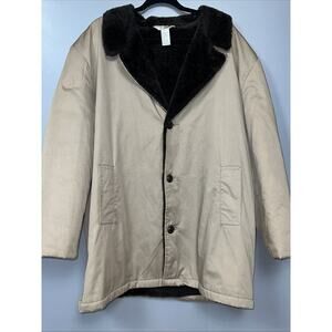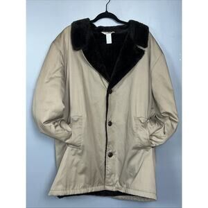 Vintage Haband Tan Heavy Faux Fur Lined Coat Men L Winter Heavy Duty Warm *READ