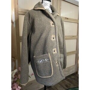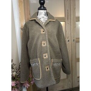 Vintage Haband Womens Coat Jacket M Buttons Reversible Fleece Brown Collared
