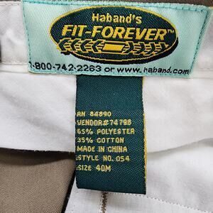 Vintage Haband's Fit-Forever Pants Mens 40M 28.5L Tan Pleated Trouser Office Preppy Career Stretch Waist