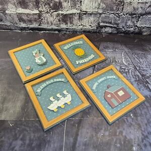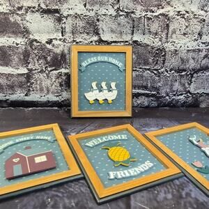 Vintage Habersnam Country Sign Collection Wood Framed Made in Taiwan