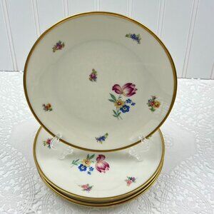 Vintage Hackefors 4 Dessert Bread Plates 32 Porslin Sweden Gold Trimmed Floral