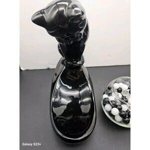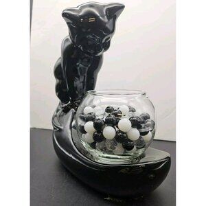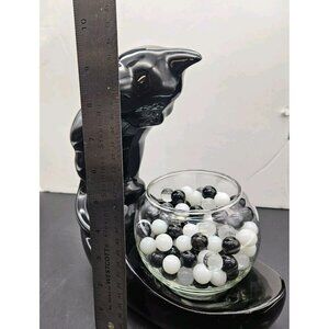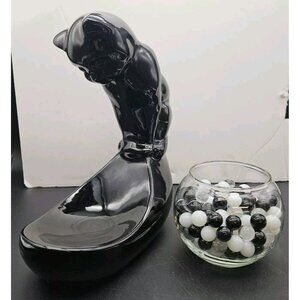 Vintage Haeger Black Ceramic Cat With Glass Fish Bowl With Marbles