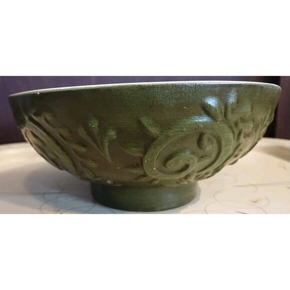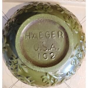 Vintage Haeger Pottery Bowl Planter Avocado Green Pedestal Footed MCM USA