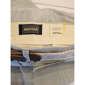 Vintage Haggar Prestige Belted Dress Pants Men's 33x34 Green Linen PermPress NWT.