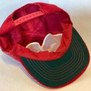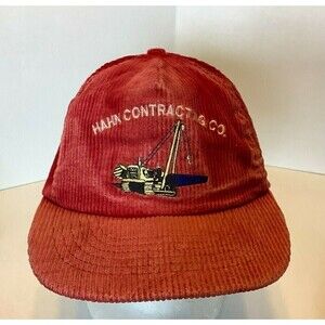 Vintage Hahn Contracting Red Corduroy Snapback Hat Cap Embroidered Construction