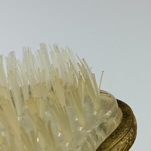 Vintage Hair Brush Brown Marble Like Back Golden Handle Clear Bristles Removable