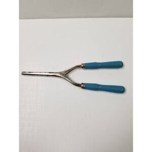 Vintage Hair Tongs, Blue Wood Handle Hair tongs, Curling Iron Metal Barrel
